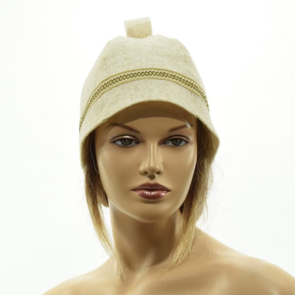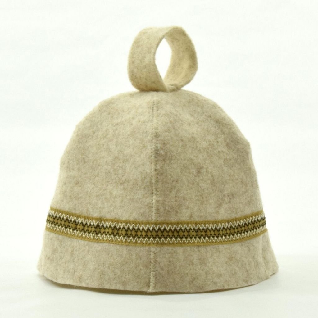 Béžova saunová čepice se vzorem – 100% ovčí vlny