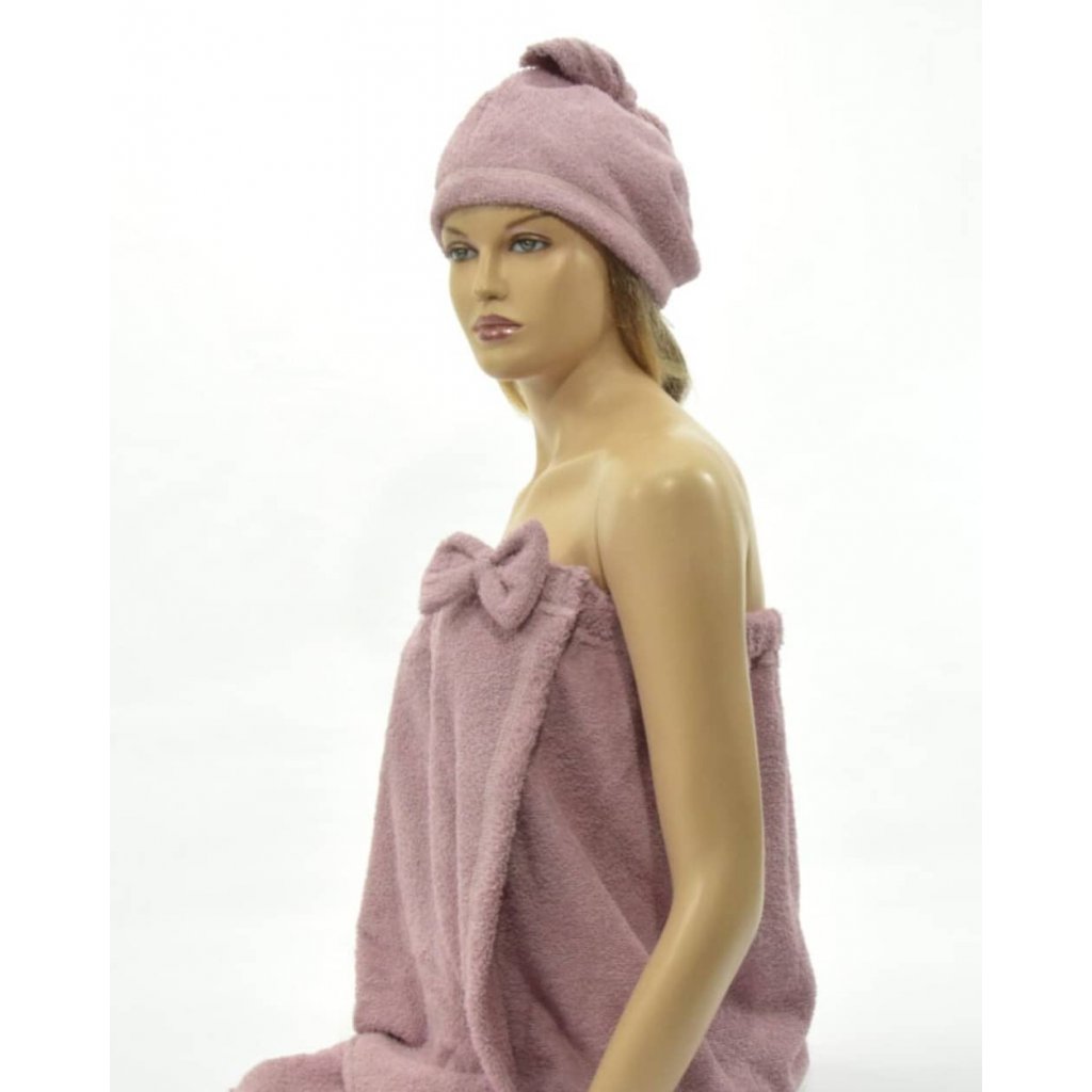Dámská trojdílná saunová sada – starorůžová, 100% bavlna