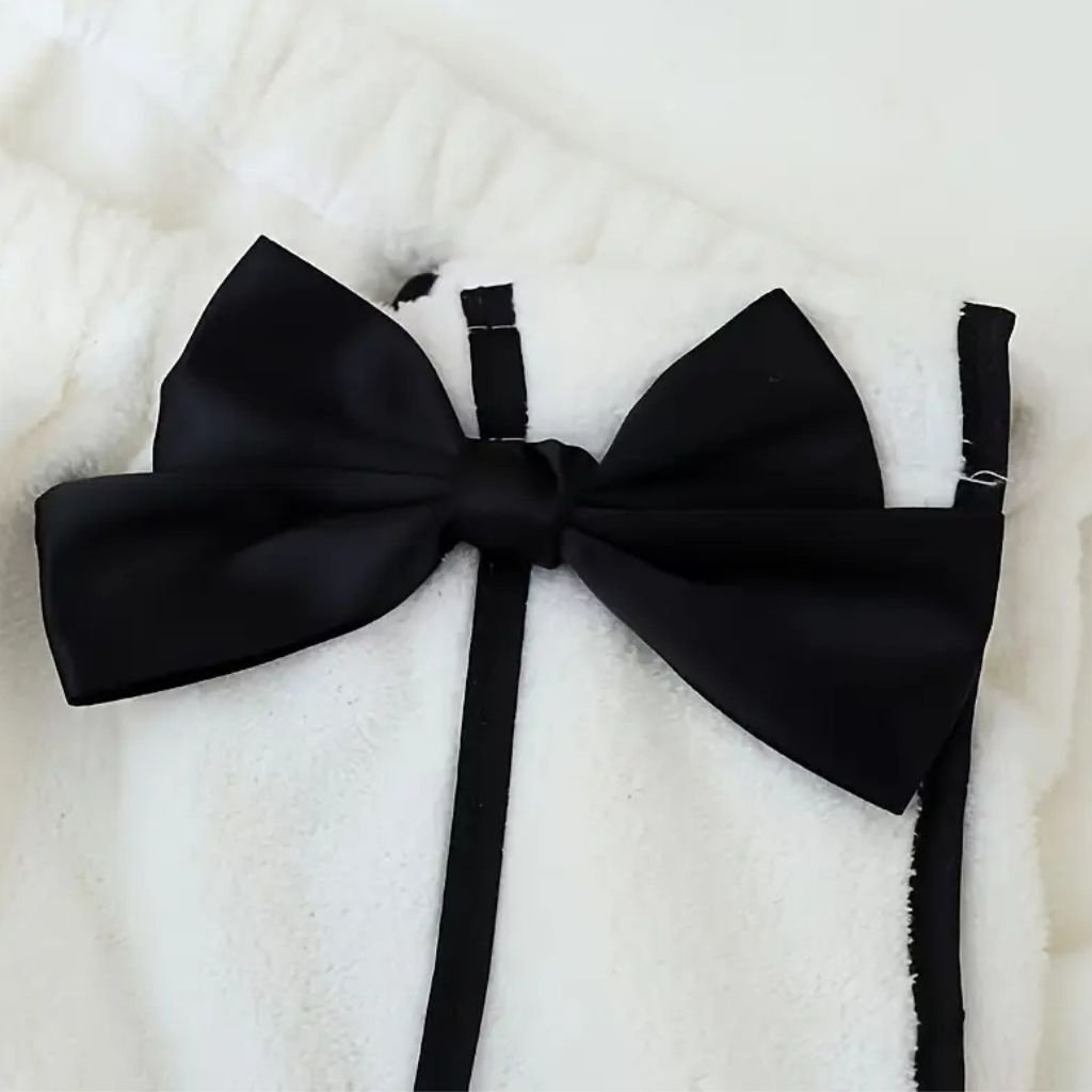 ✅ Krémová barva s černou mašlí – elegantní design