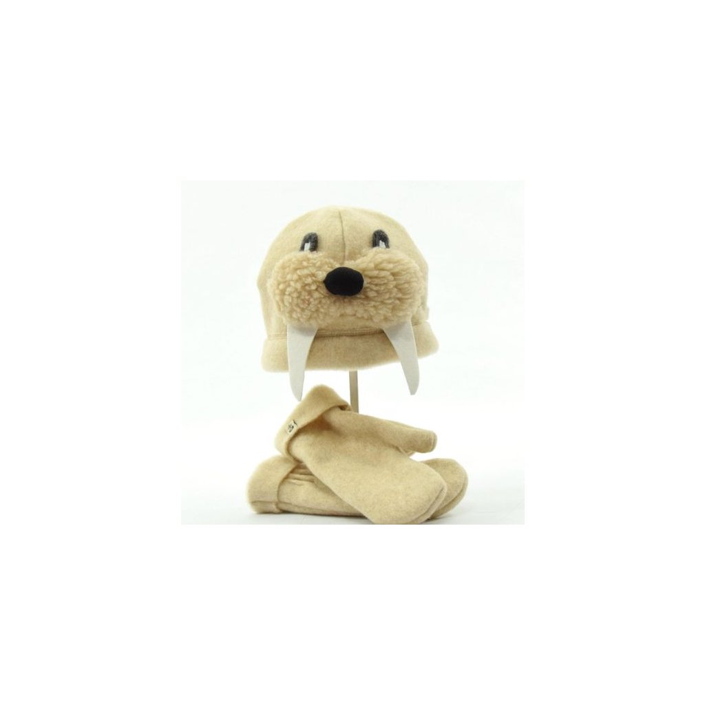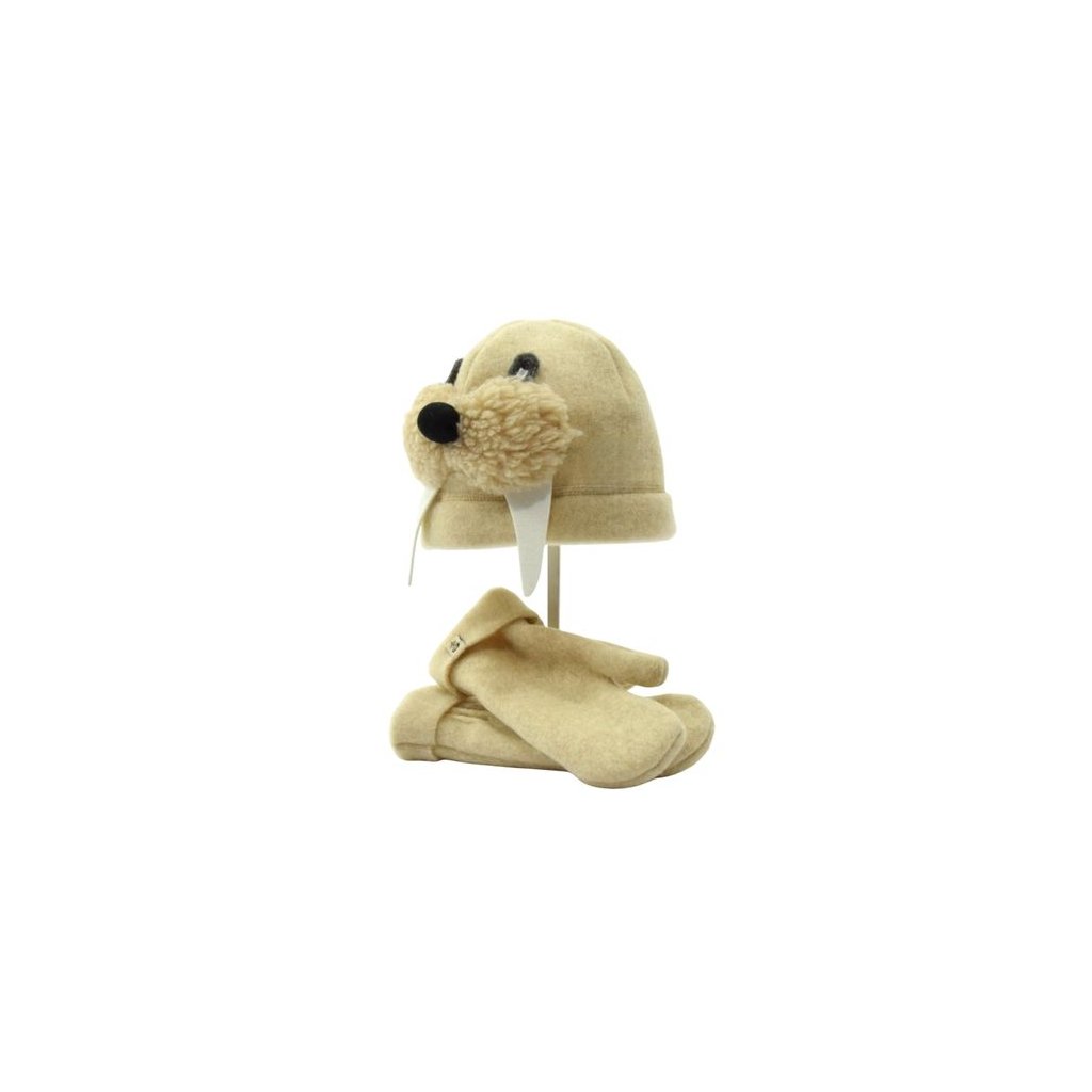 Otužovací klobouk a rukavice Mrož ze 100 % ovčí vlna