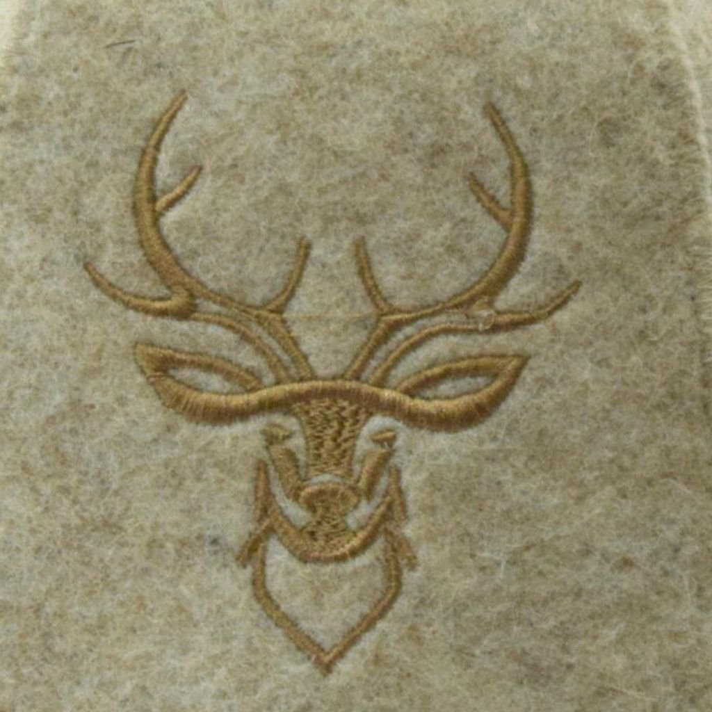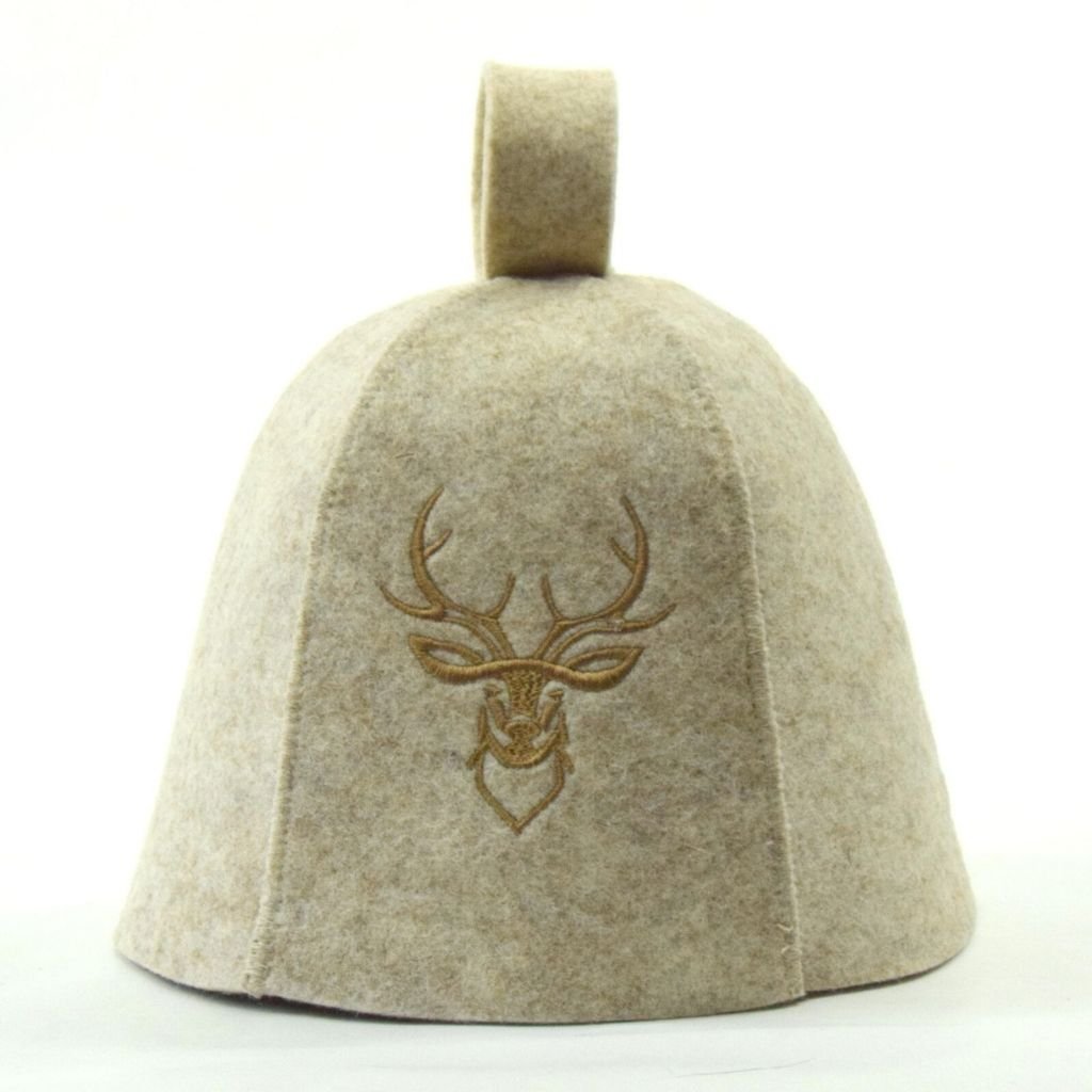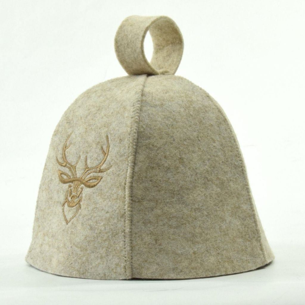 Saunová čepice krémový zvonek – 100 % vlna, motiv Jelen