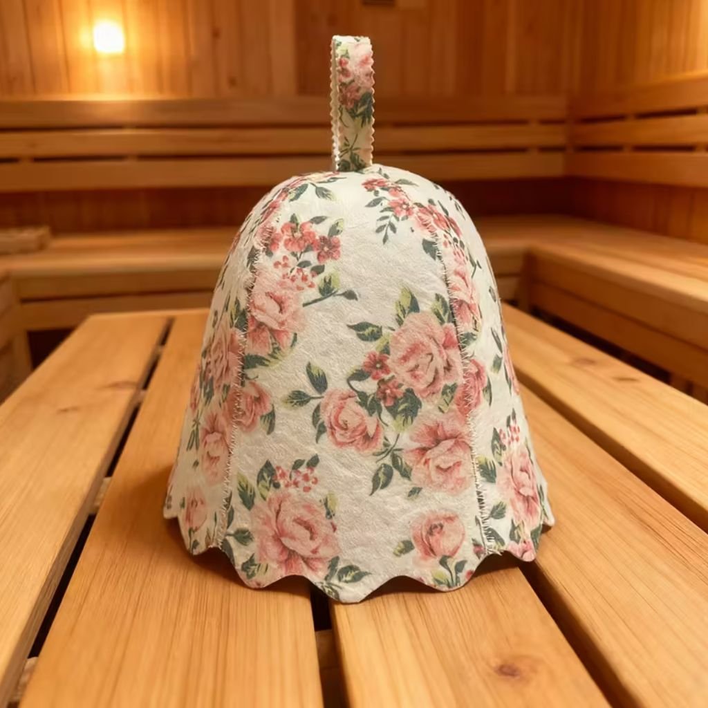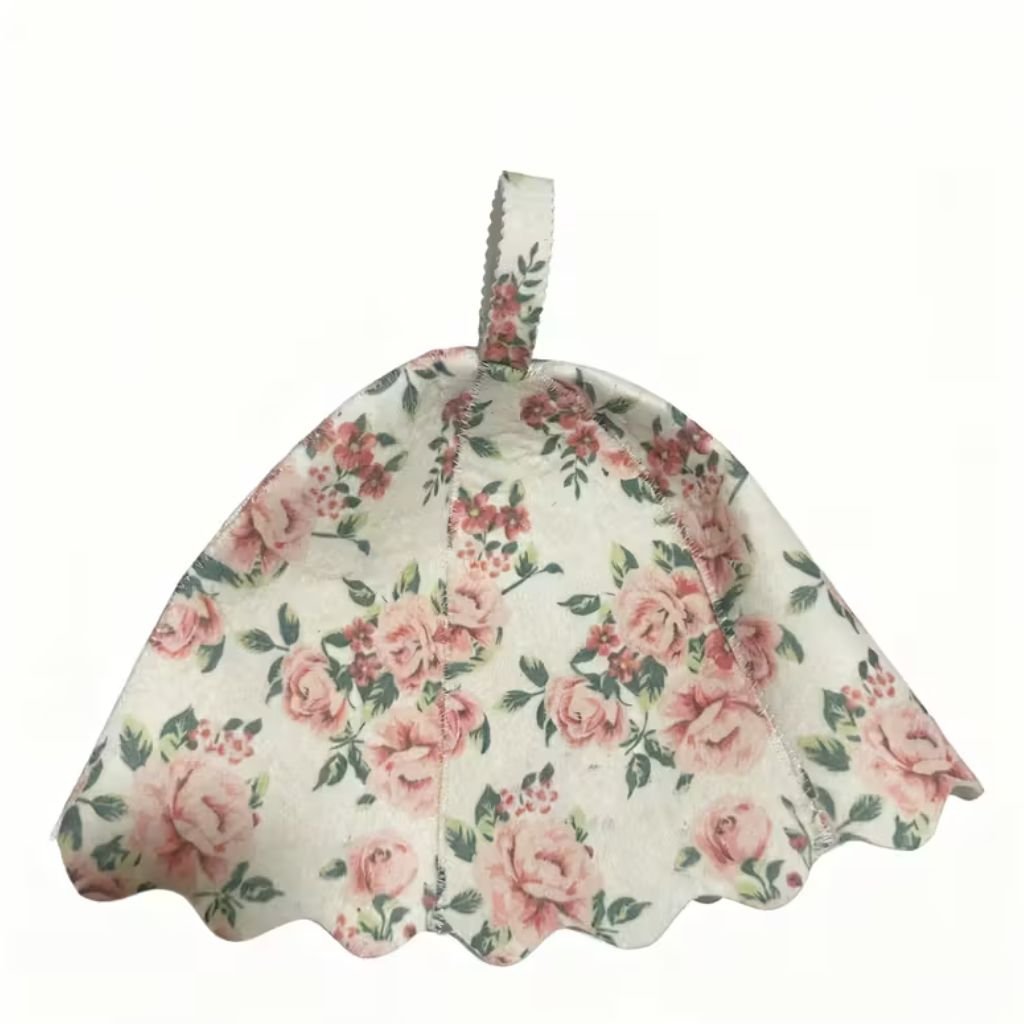 Saunová čepice – Zvonek s kytičkami Stylová a praktická ochrana do sauny Vyrobena z kvalitního filcu (100% polyester) – pevná,...