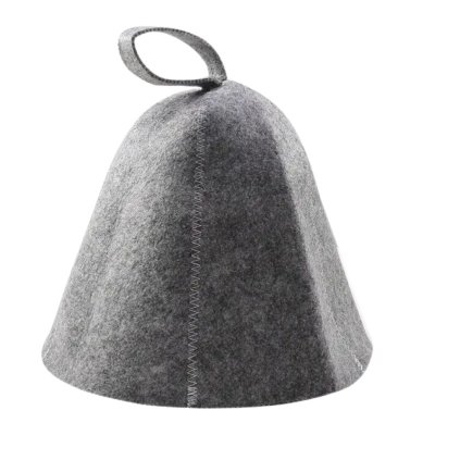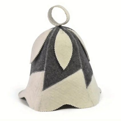 Klasická šedobílá saunová čepice ve tvaru zvonku je vyrobena z kvalitní plsti, která účinně chrání hlavu a vlasy před přehřátím. Univerzální design pro muže i ženy.