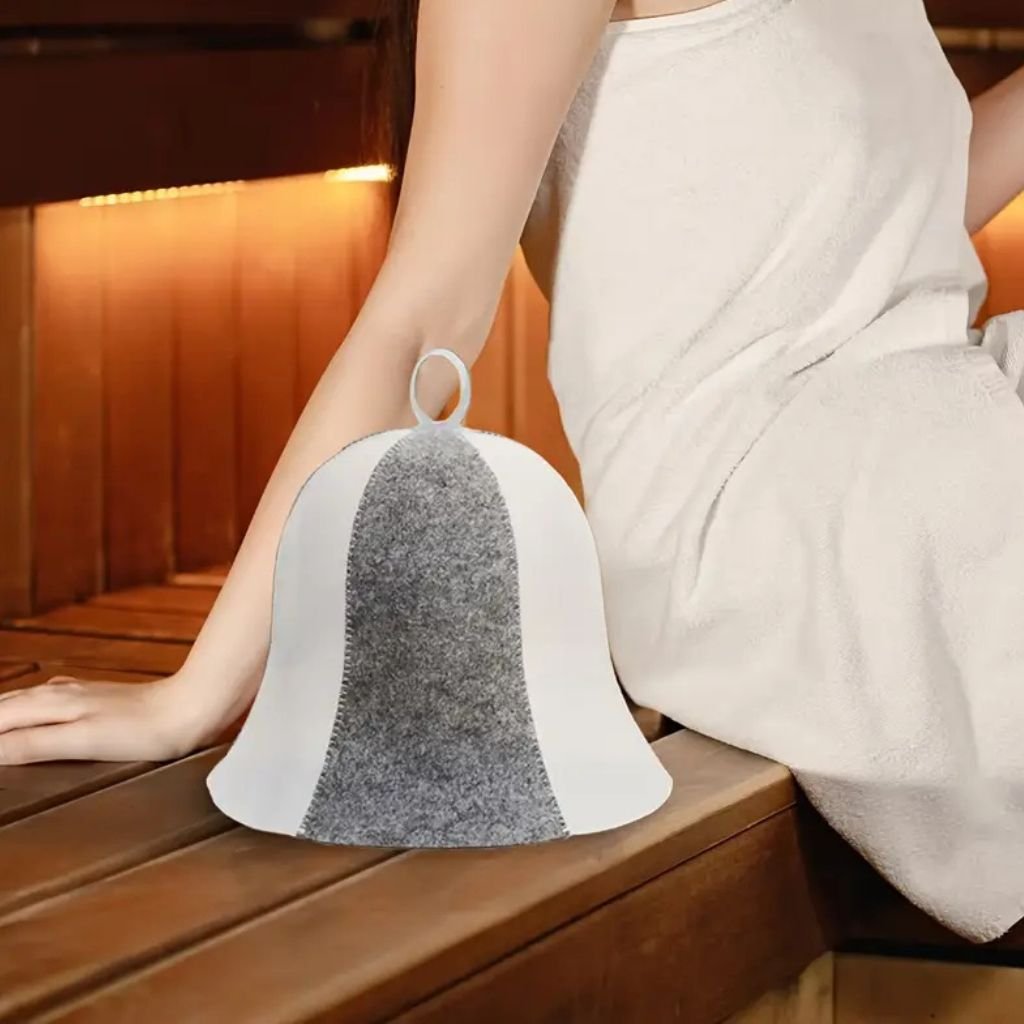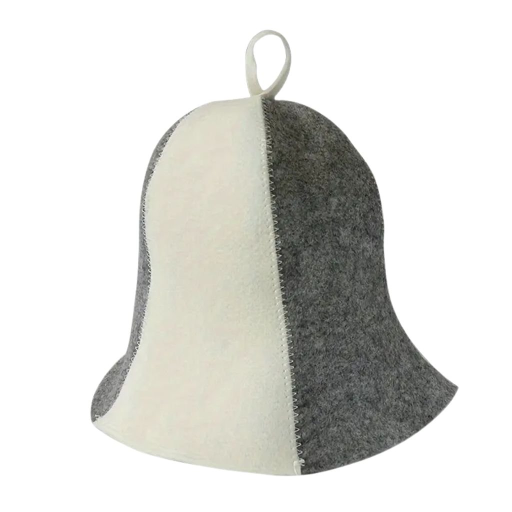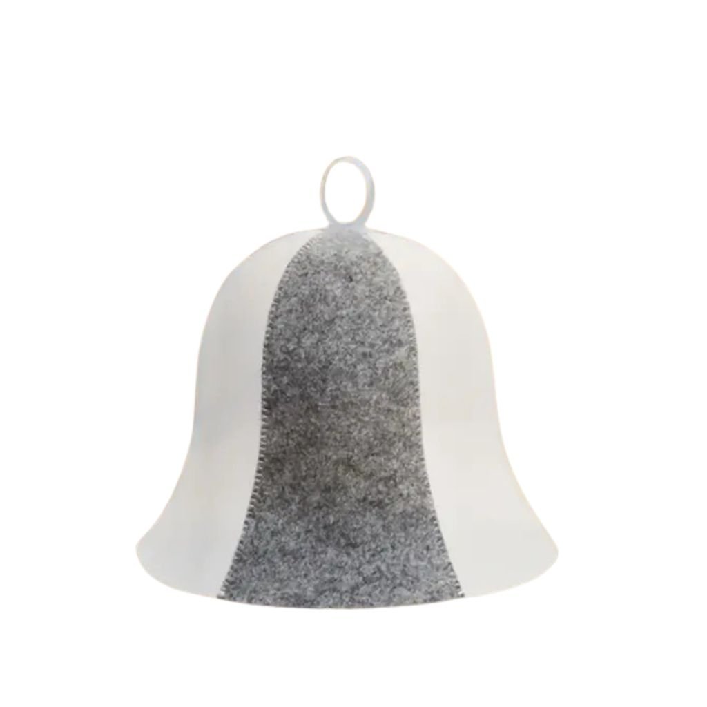 Klasická šedobílá saunová čepice ve tvaru zvonku je vyrobena z kvalitní plsti, která účinně chrání hlavu a vlasy před přehřátím. Univerzální design pro muže i ženy.