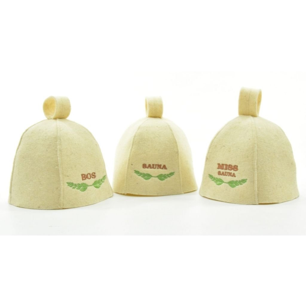 Saunová čepice zvonek s výšivkou SAUNA – 100 % ovčí vlna